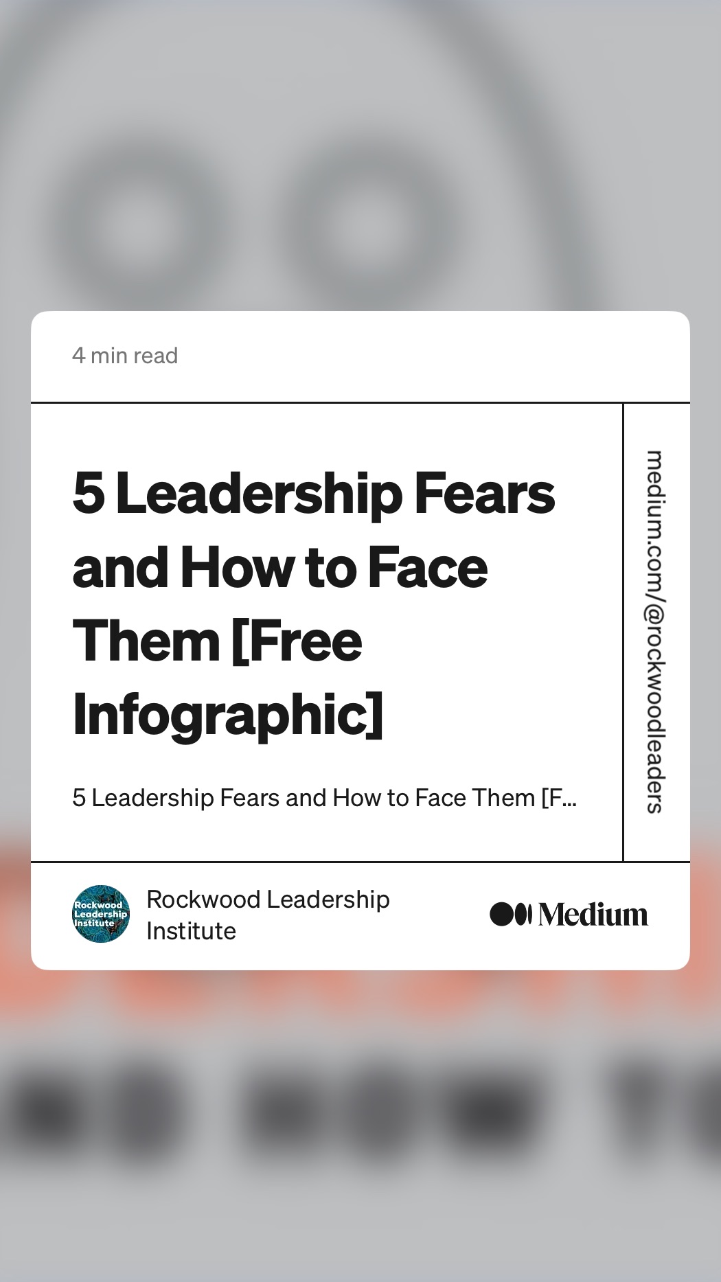 5 Leadership Fears and How to Face Them Sam worthwhile reading May 20, 2024May 20, 2024 1 Minute medium.com/leading-from-the-inside-out/5-leadership-fears-and-how-to-face-them-free-infographic-d85252d753d0 Share this: Share on X (Opens in new window) X Share on Facebook (Opens in new window) Facebook Like Loading... Related Published by Sam View all posts by Sam Published May 20, 2024May 20, 2024